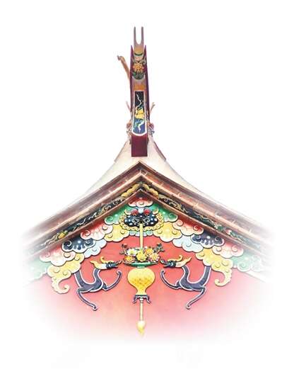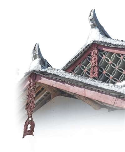 悬鱼的造型简繁多样,简单的使用条板,复杂的则装饰精美、纹样丰富,有蝙蝠、龙凤、花卉等各种造型,与博风板上的图案相互映衬,共同构成山面装饰。