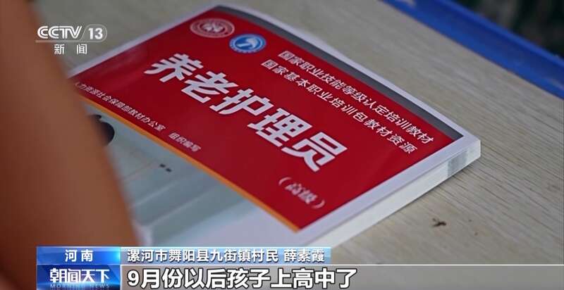 河南省漯河市舞阳县九街镇村民 薛素霞:我对养老行业还挺感兴趣的,9月份以后孩子上高中了,我就可以出来工作了。