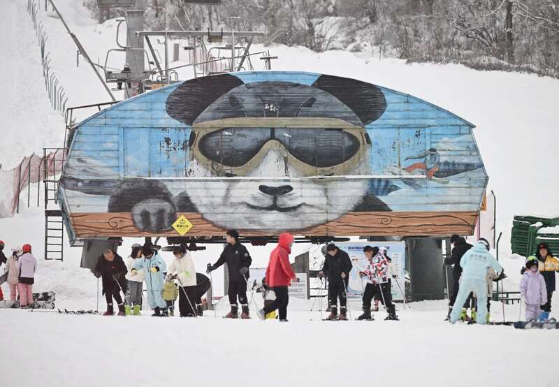 2025年1月14日,游客在四川成都西岭雪山滑雪场滑雪。