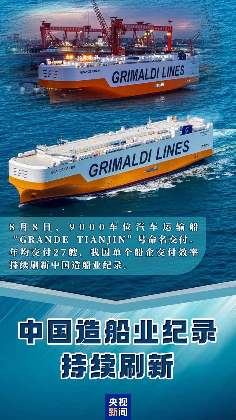 “GRANDE TIANJIN”号具备9000车标准装载能力,可兼容电动车、传统燃料汽车及重型滚装货物。拟定于8月19日开启首航,主要搭载中国新能源汽车并运营中欧间航线。