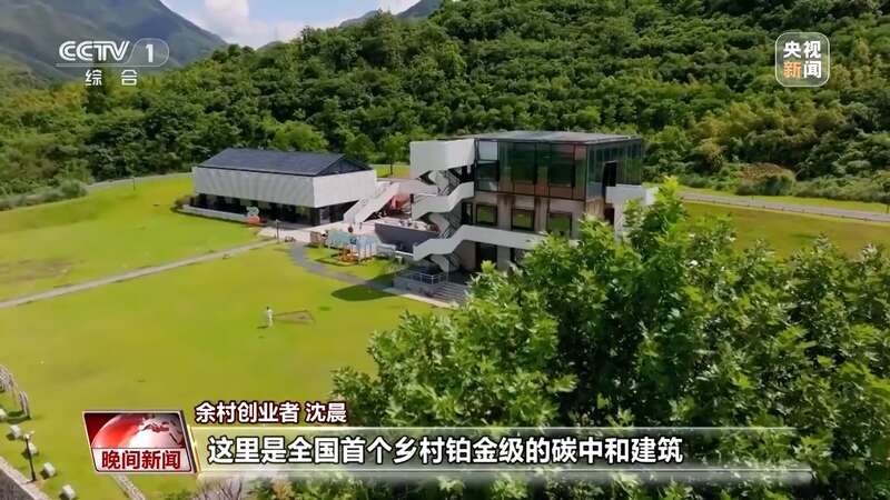 余村创业者 沈晨:余村青年图书馆是全国首个乡村铂金级的碳中和建筑,它是由之前废弃的化工厂改造而成的。楼顶有光伏玻璃瓦片,为图书馆发电。在一二楼给我们提供阅读的地方、地下一层还有国漫主题茶咖,到了晚上图书馆还会有英语角和余村夜话等活动,给新老村民提供谈天说地的一个好地方。