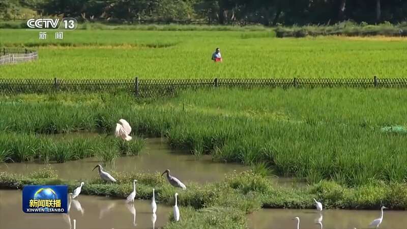 湖南邵阳崀山脚下,稻农们在稻田里为朱鹮留下这样的觅食空间,并严格控制农药化肥。留住了朱鹮的稻田,生长出的稻米更受欢迎。