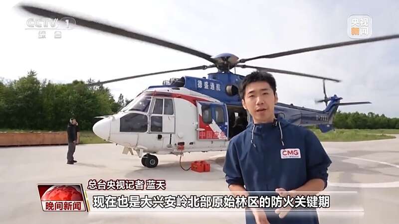 总台央视记者 蓝天:因为夏季雷击火频发,现在也是大兴安岭北部原始林区的防火关键期。今天正好是驻防指挥官换防的日子,接下来我们跟随直升机一起前往北部林区来进行换防,同时也进行空中巡护。