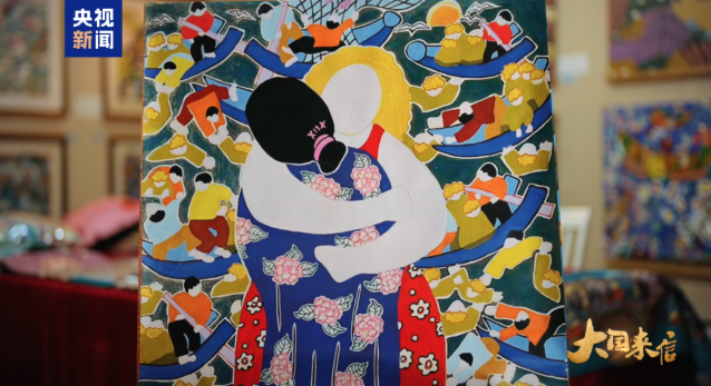 吴小飞也回赠了一件礼物。由于她是一名渔民画创作者,于是就把一幅名为《拥抱》的作品创作出来送给了对方。在她看来,这不但是她们两个人的拥抱,也是国和国的拥抱。