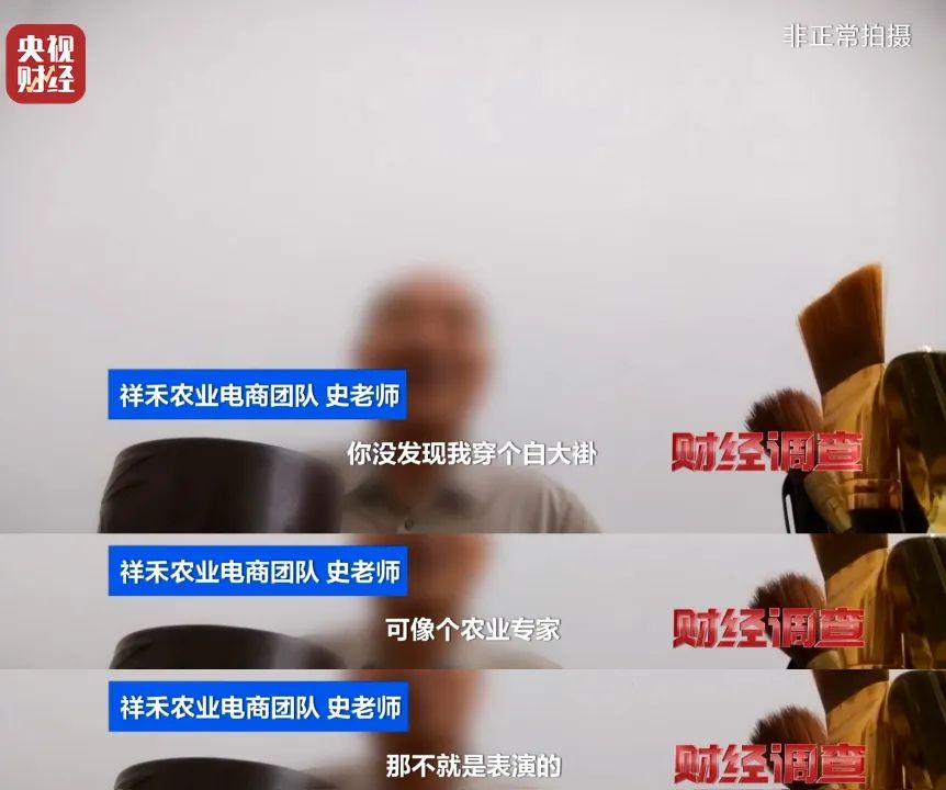 当记者询问农业研究所与祥禾农业的关系时,史老师表示,一切都是假的,都是表演。