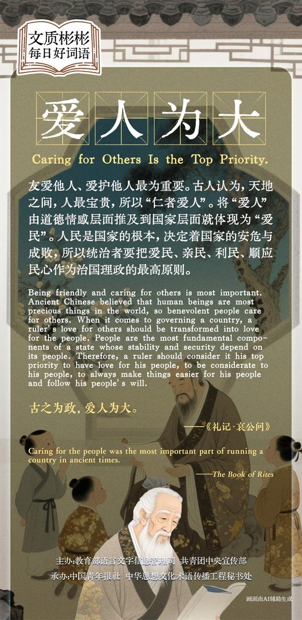 Caring for the people was the most important part of running a country in ancient times. (The Book of Rites)