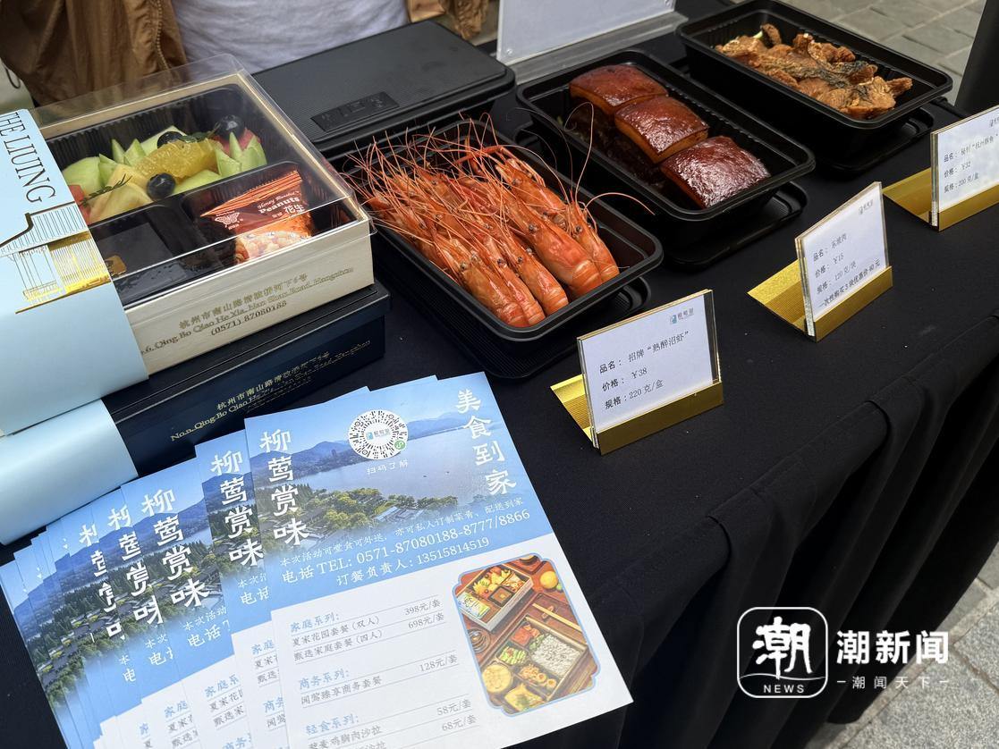 工作人员支起摊位,酥鱼、东坡肉、熟醉沼虾等依次排开,这是柳莺里为此次外送服务准备的招牌菜,很快就引来不少居民的围观。