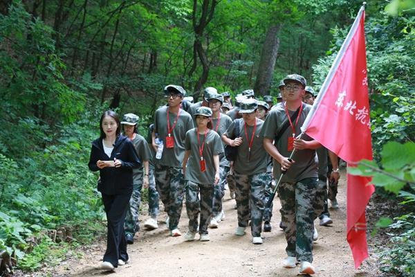 马铖明(左一)组织磐石籍“返家乡”大学生重走抗联路。受访者供图