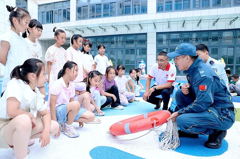暑期以来,宿迁市公安局宿城分局联合蓝天救援志愿服务队开展暑期防溺水安全主题教育活动,民警和志愿者通过案例讲解、现场演示、互动交流等方式,向学生宣讲防溺水安全知识和救援技能,提高学生的自我防范能力,筑牢防溺水安全防线。