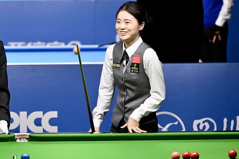 中国女子斯诺克选手白雨露在本次世运会的比赛上。视觉中国供图