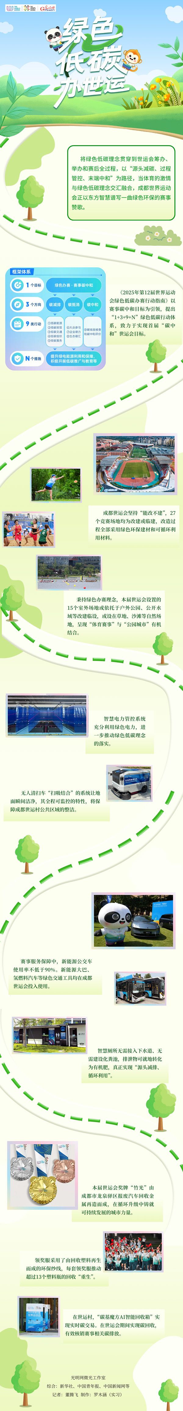 将绿色低碳理念贯穿到世运会筹办、举办和赛后全过程,以“源头减碳、过程管控、末端中和”为路径,当体育的激情与绿色低碳理念交汇融合,成都世界运动会正以东方智慧谱写一曲绿色环保的赛事赞歌。