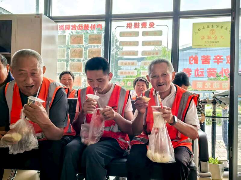 中国青年报客户端讯(付银凤 中青报·中青网记者 王海涵)8月13日清晨,安徽阜阳市阜南县6座城管服务驿站变身“暖心食堂”——桌子上的豆浆冒着热气,猪肉馅包子和水煮蛋香气扑鼻,一百多名环卫工人在这里享用免费早餐。环卫工人陈雪凤说:“这早餐太暖心了。感觉很受尊重,有人一直惦记着我们呢!”