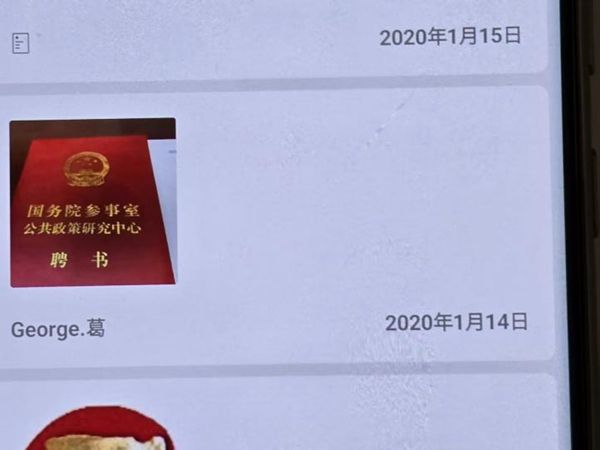 “他说托朋友去办理聘书,索取了我的相关资料,我还交了少量的工本费。”余鹏翔告诉澎湃新闻,2020年1月14日,葛某某在微信上通知他聘书办下来了可以去取。“但由于疫情关系,我后来一直没有回北京,也一直没有见到聘书。但通信中经常听他提起,所以我也从未怀疑过。”余鹏翔表示。