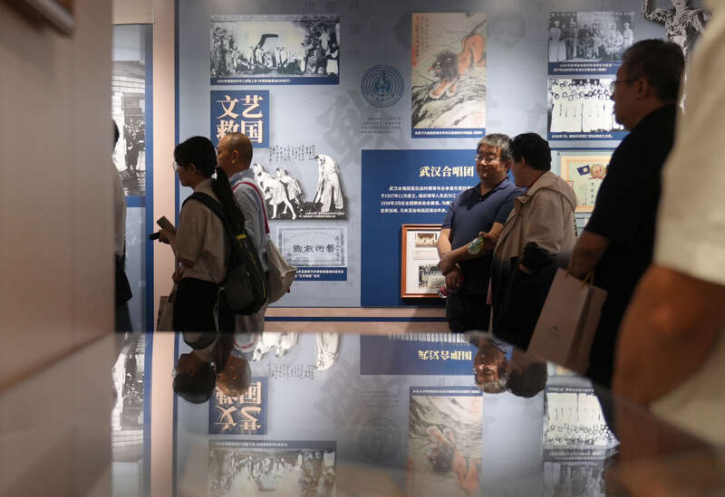 8月14日,北京,中国华侨历史博物馆,观众在“支援抗战 为国呼号”展区观展。李媛/摄