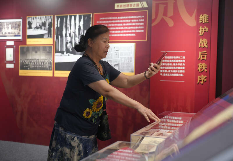 8月14日,北京,中国华侨历史博物馆,一位泰国侨眷正在拍摄泰国华侨抗战历史资料。李媛/摄