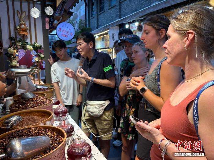 “我喜欢这种冰镇的口感,甜度也刚好,真的很好喝。”艾莉·莱曼还挑选了几袋果茶,准备带回国和朋友分享。“这里深厚的文化底蕴让我受益匪浅。”在美国卡尔顿学院任教的艾莉·莱曼表示,此行来到中国,让自己对来自中国的学生有了进一步的了解。“这里有太多新奇的东西了!”艾莉·莱曼还计划未来带家人到成都探索不一样的生活。