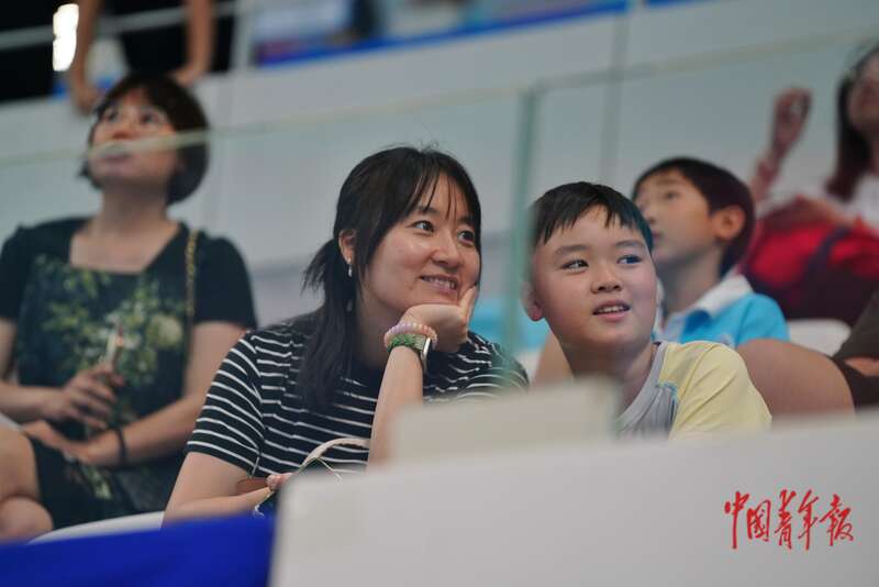 8月15日,北京国家速滑馆“冰丝带”,一对母子正在看台上观看2025世界人形机器人运动会。当日,是2025世界人形机器人运动会开赛的第一天,不少家长带着孩子前来观看比赛、观摩机器人表演。本次运动会不仅是机器人界的“奥运会”,更是青少年寓教于乐的科技嘉年华。据了解,在运动会开始前的近一个月,相关的亲子观摩团,就在各社交媒体上火热招募。中青报·中青网记者 赵迪/摄