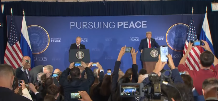 当地时间8月15日,美国总统特朗普和俄罗斯总统普京在美国阿拉斯加州安克雷奇举行联合新闻发布会。