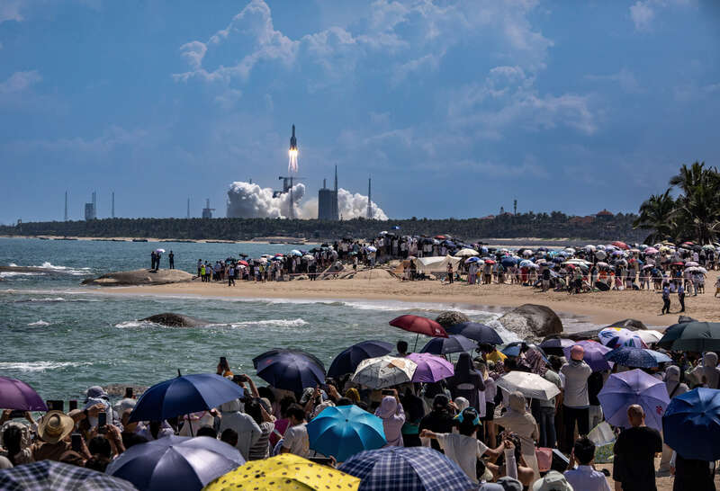 8月13日,我国在文昌航天发射场使用长征五号乙运载火箭远征二号上面级,成功将卫星互联网低轨08组卫星发射升空,卫星顺利进入预定轨道,发射任务获得圆满成功。视觉中国供图