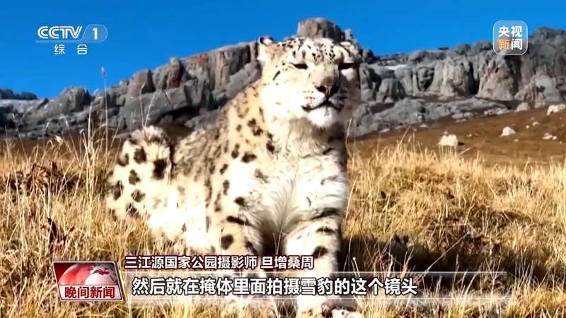 三江源国家公园摄影师 旦增桑周:距离很近。因为我们怕惊扰到野生动物,就事先做好掩体,在掩体里面拍摄雪豹的镜头。比如兔狲、猞猁,看到的概率就更高了。