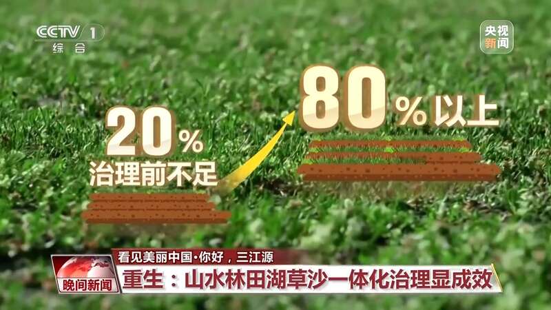 生态治理、退牧还草、易地搬迁、山水林田湖草沙一体化治理,二十年的坚持不懈,让三江源旧貌换了新颜。三江源黑土滩治理区域植被盖度,由治理前的不足20%提升至80%以上。
