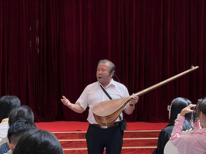 学生们聆听着十二木卡姆的悠扬旋律,古老的乐声仿佛带着他们穿越了时光,在民族文化的长河中静静徜徉。中青报·中青网记者 赵婷婷/摄