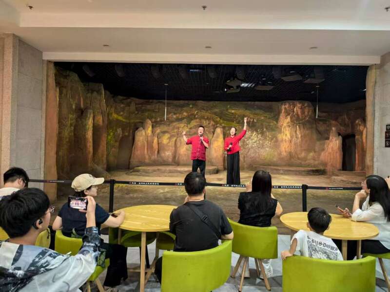 观众在陕北民歌博物馆观看表演。新华社记者 张京品 摄
