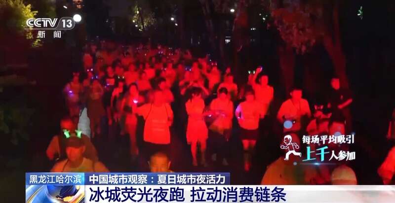 今年,哈尔滨共举办6场荧光夜跑活动,每场平均吸引上千人参加,拉动了周边景区门票、餐饮住宿等业态增长。