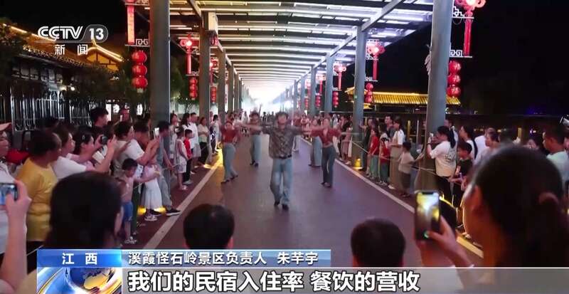 溪霞怪石岭景区负责人朱芊宇:夜游开放第一天就来了三四千人,我们的民宿入住率、餐饮的营业额、特色农产品消费都有很大提升,实现了从过去门票经济向多元增收的转变。