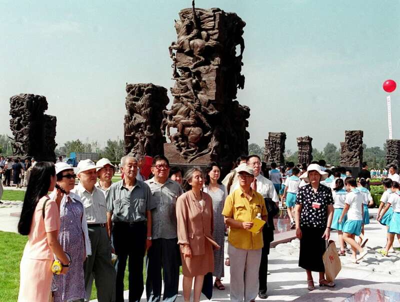 2000年8月15日,北京各界群众4000多人在刚落成的中国人民抗日战争纪念雕塑园隆重集会,纪念中国人民抗日战争胜利55周年。