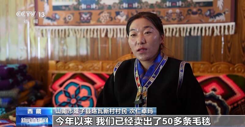 山南市隆子县珞瓦新村村民 次仁卓玛:今年以来,我们已经卖出了50多条毛毯,100多个靠枕,其中一半是通过网络直播卖出的。接下来我想把这门手艺教给村里更多的人,大家一起把致富之路越走越宽。