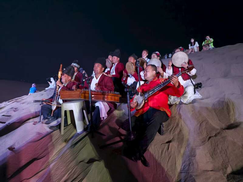 四地青少年聆听新疆民间艺人演奏,与当地群众围火而聚、载歌载舞。中青报·中青网记者 赵婷婷/摄