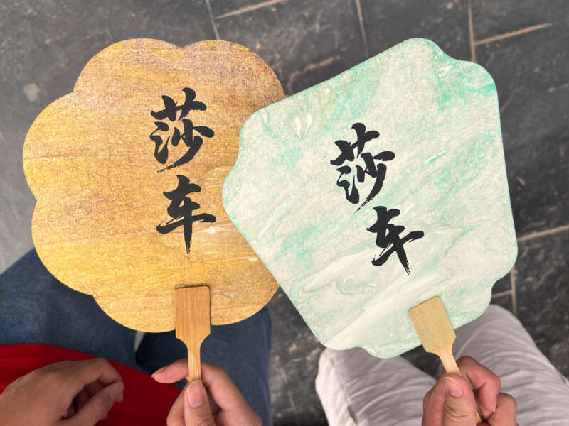 “粤港澳青少年新疆行”期间,港澳青年体验制作漆扇。他们以漆料为笔,勾勒出新疆的万千风情。中青报·中青网记者 赵婷婷/摄