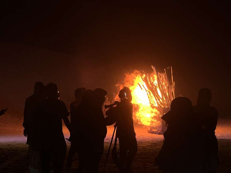 来自广东、香港、澳门和新疆的青少年走进麦盖提县N39°沙漠星空营地。篝火点亮了大漠夜空,也点燃了青少年心中的热情。中青报·中青网记者 赵婷婷/摄