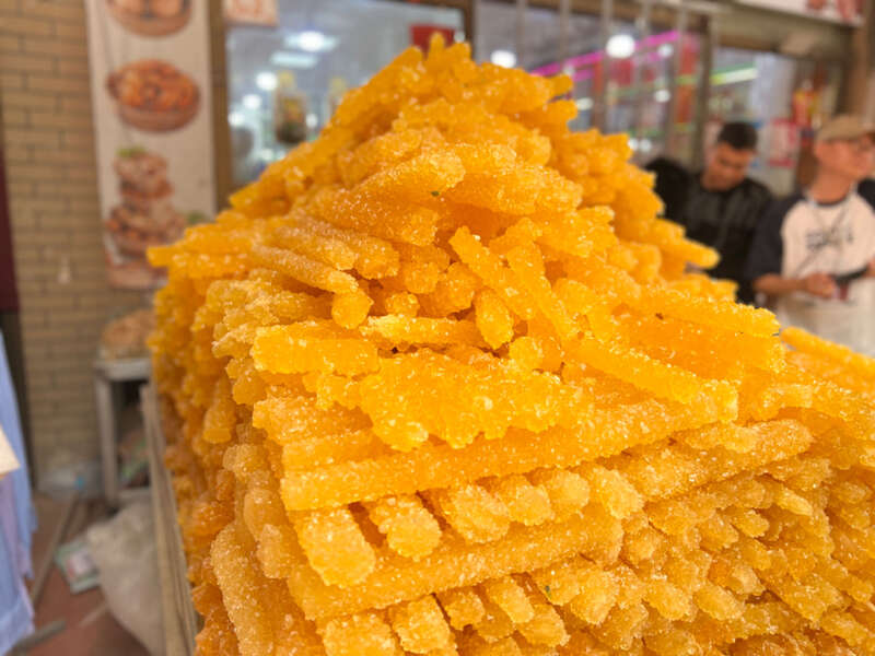 “粤港澳青少年新疆行”期间,青少年被新疆特产黄冰糖吸引。中青报·中青网记者 赵婷婷/摄