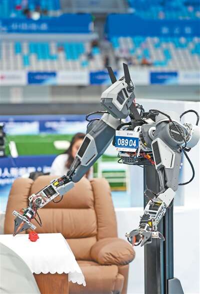 竞技比拼之外,还有科技与文化、生活的交融。开幕式上,戏曲机器人携手小演员唱响《穆桂英挂帅》;群体舞蹈比赛中,北京舞蹈学院与湖北光谷东智联队演绎《秦俑魂》;场边机器人营地,人们与萌宠机器人合影,喝上一杯机器人调制的咖啡,满是欢声笑语。