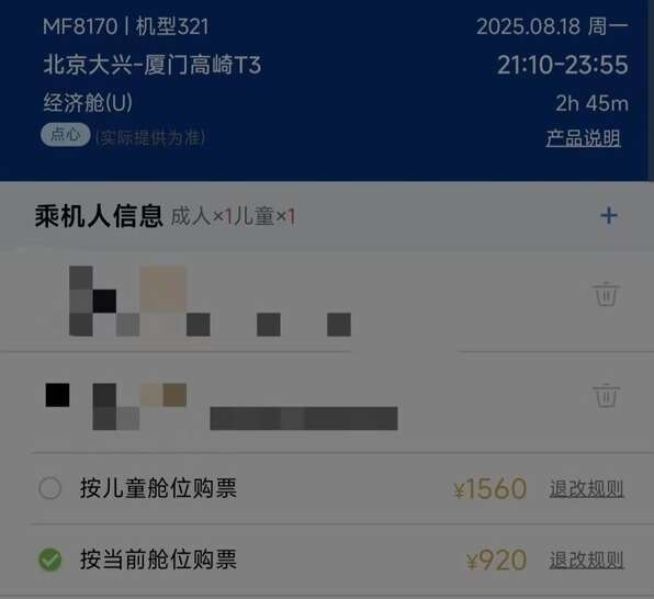 纠纷:按成人购票儿童基建燃油优惠没了