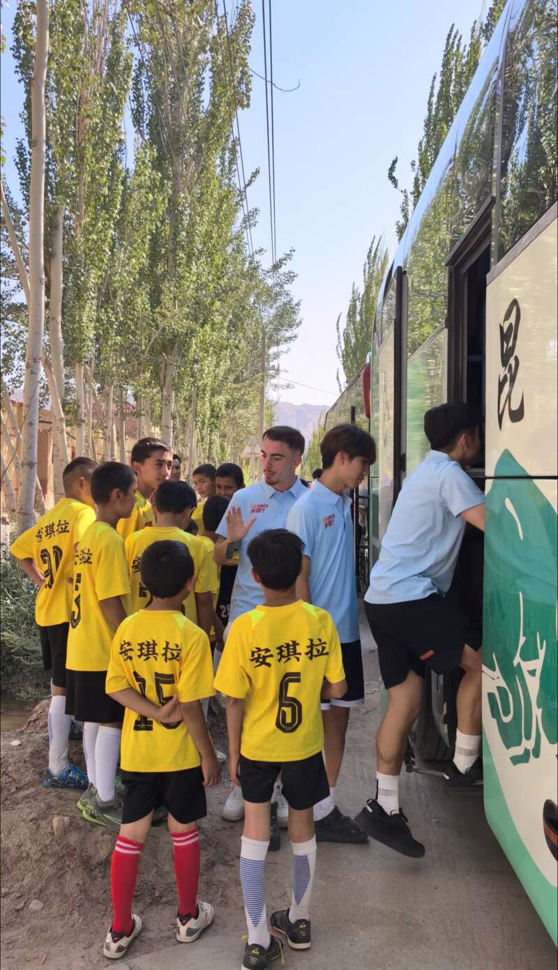 中国青年报客户端新疆8月21日电(中青报·中青网记者 赵婷婷)“再见,我的朋友!”足球交流活动结束后,依克萨克村柏山足球俱乐部的小朋友与来自广东、香港、澳门和新疆的青少年依依惜别。有当地小朋友告诉中青报·中青网记者,他自3岁起接触足球,特别期待与来自外地的朋友一起踢球、交流。