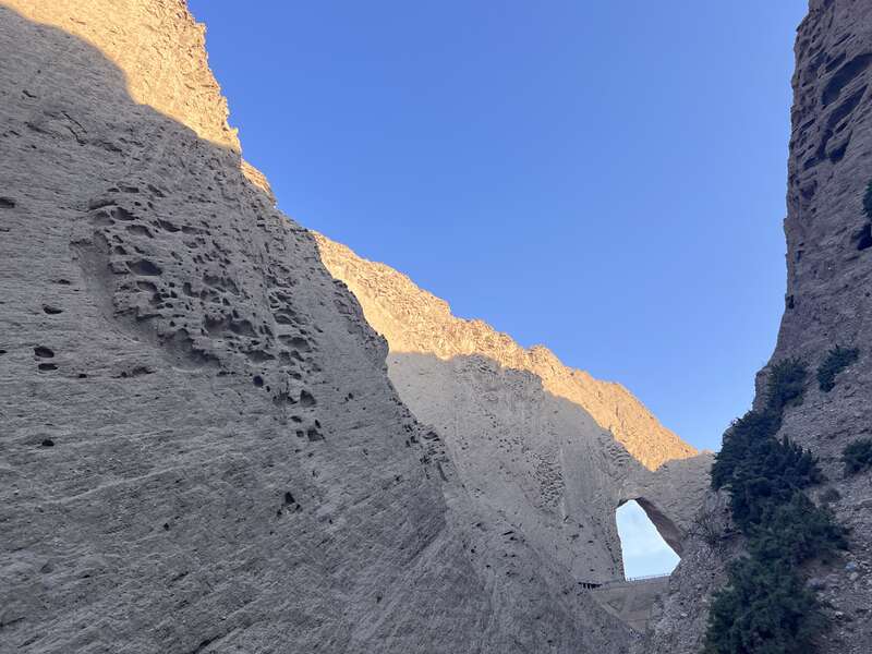 在阿图什天门景区,沿途可见约260万年前经风雨侵蚀形成的象形山体,如金猴守岁、日月门、一线天、小天门等自然景观。中青报·中青网记者 赵婷婷/摄