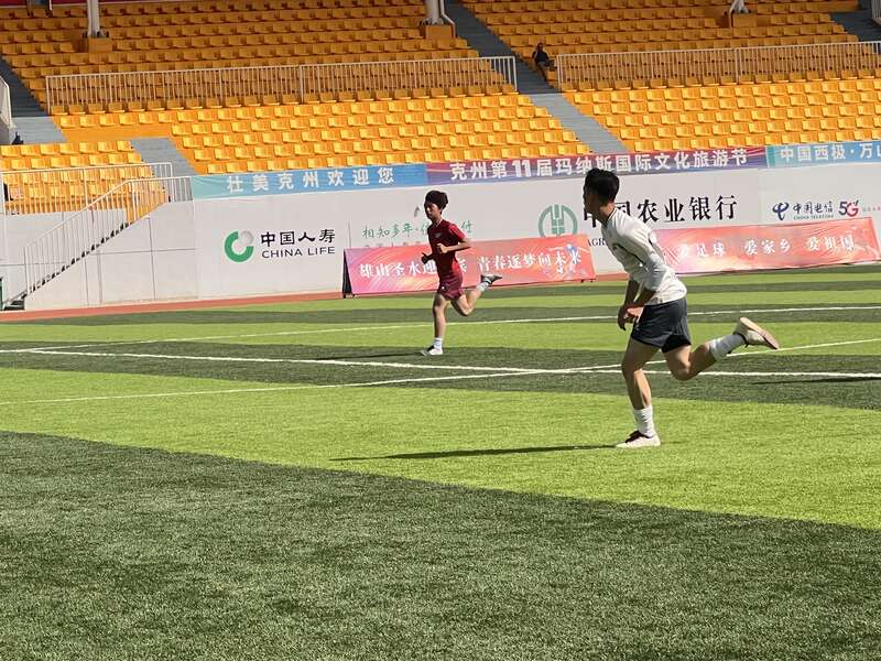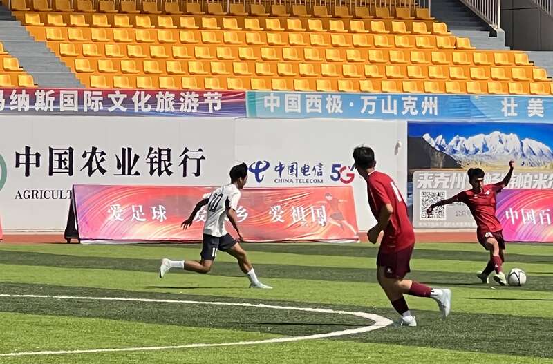 在阿图什市足球公园,四地青少年组成混合队伍,进行友谊赛。中青报·中青网记者 赵婷婷/摄