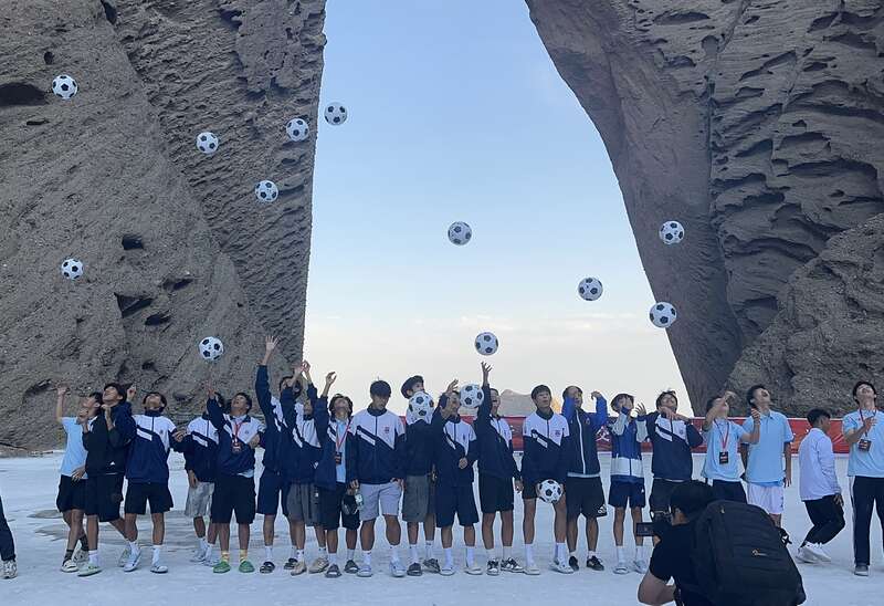 “粤港澳青少年新疆行”文体交流活动期间,少年们在天门巨型“球门”前切磋球技,于海拔3000米处用笑容与友谊架起“连心桥”,一幕幕场景交织成最动人的风景。中青报·中青网记者 赵婷婷/摄