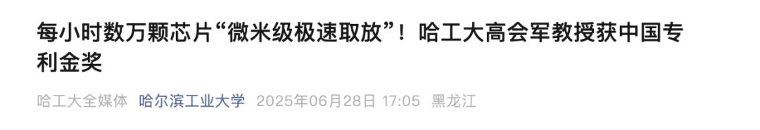 两个月前,高会军还获得了第二十五届中国专利金奖。据哈工大消息,中国专利奖是中国唯一对授予专利权的发明创造给予奖励的政府部门奖,也是中国专利领域的最高荣誉。其中,中国专利金奖每年不超过30项。