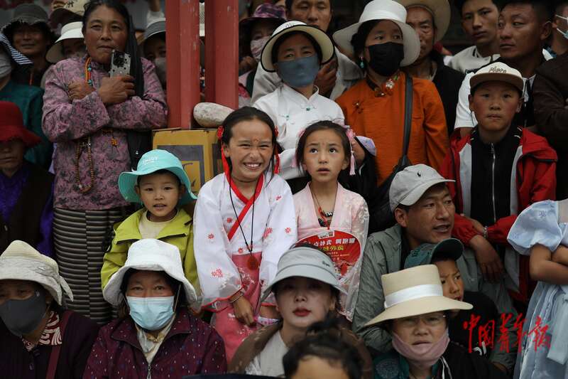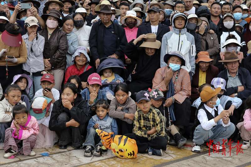 8月20日,青海省玉树藏族自治州囊谦县,歌舞表演吸引了许多当地民众前来观看。中青报·中青网记者 孔斯琪/摄
