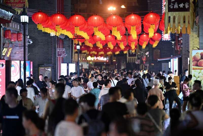 2025年8月3日,游客在天津古文化街游玩。新华社记者 赵子硕 摄
