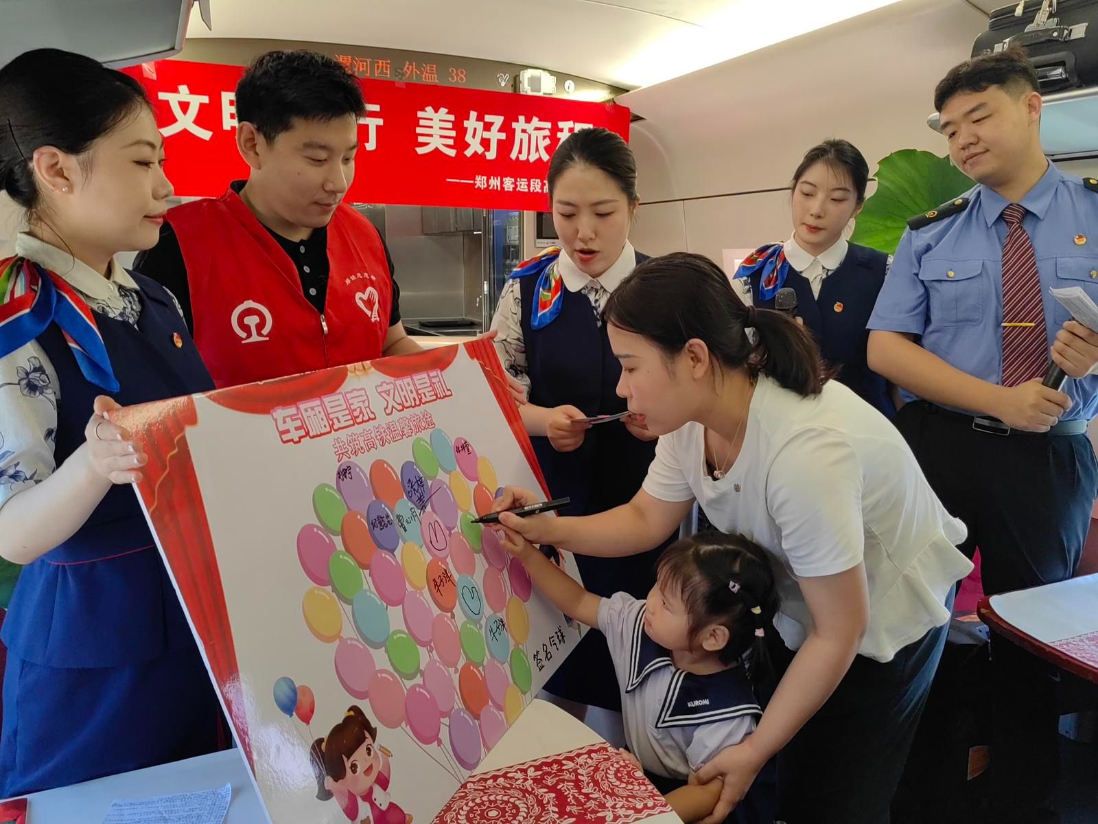 中国青年报客户端讯(张强 郭晓萌 中青报·中青网见习记者 郑欣宜 记者 周伟)盛夏时节,京广铁路线上客流如织,由郑州东站开往昆明方向的G1537次高铁列车,日前化身为别开生面的“移动课堂”。由郑州客运段精心策划的“文明出行,美好旅程”主题宣传活动在这里温暖上演,将文明理念播撒进旅客心田,为暑期旅途注入了一股清新的文明之风。