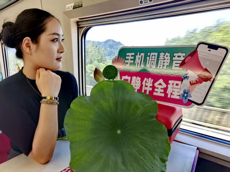 上午10时36分,列车从郑州东站正点发出。车厢化身为一条移动的“文化长廊”,荷花点缀其间,书香四处弥漫,旅客们徜徉在这片知识与美的天地中,感受着旅途的宁静与雅致。伴随着主持人尹煜聪、郭笑影亲切的开场白,活动正式拉开帷幕。“旅途的风景不仅在窗外,更在每一位旅客的文明举动里”“同赏山水美,共践文明行”,简短的话语道出了活动的初衷:在暑期出行高峰中,通过轻松愉快的互动,凝聚“共守文明”的共识,共同营造安全、有序、舒心的出行环境。