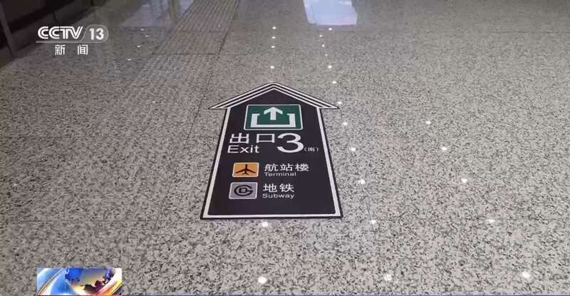 总台央视记者 曹丹:从铁路的出站口出来,大概三十到五十米的位置就是航空公司值机柜台。再从这往前走大概100米,就是国内的安检通道。旅客到达大兴机场出站以后,大概一到两分钟就可以快速抵达安检通道进行安检。