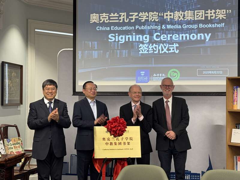 “中教集团书架”通过免费提供中文图书资源、设立专属阅读区域、组织系列文化交流活动,致力于打造兼具中文学习与中国文化传播功能的示范平台。此次落地奥克兰孔子学院的“中教集团书架”是全球第10个,此前已在马来西亚、泰国、埃及、土耳其、智利、英国、突尼斯、捷克、希腊等国家实施。