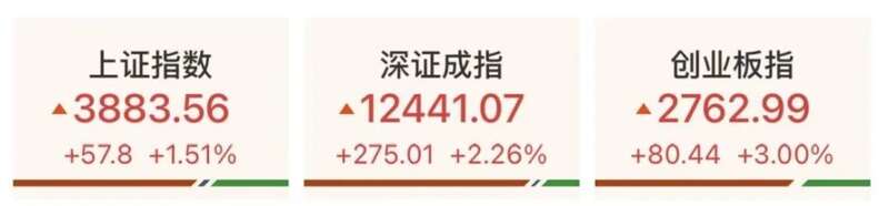 25日,A股市场全天震荡走高,超3300只个股上涨。截至收盘,沪指涨1.51%,报3883.56点,逼近3900点,深证成指涨2.26%,创业板指涨3%。