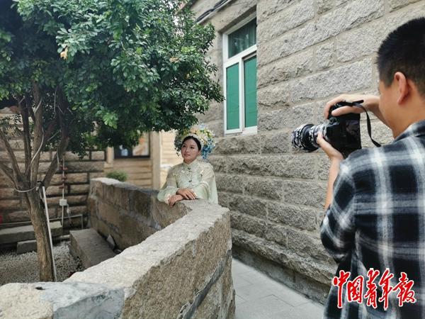 “暑期算是一个旺季。”黄丽泳说,目前妈祖庙旁边的这家店把摄影师、化妆师和簪花师都加上一共15人左右。暑假期间,店里每天大概有五六十人消费,最忙的时候会有100多位客人。